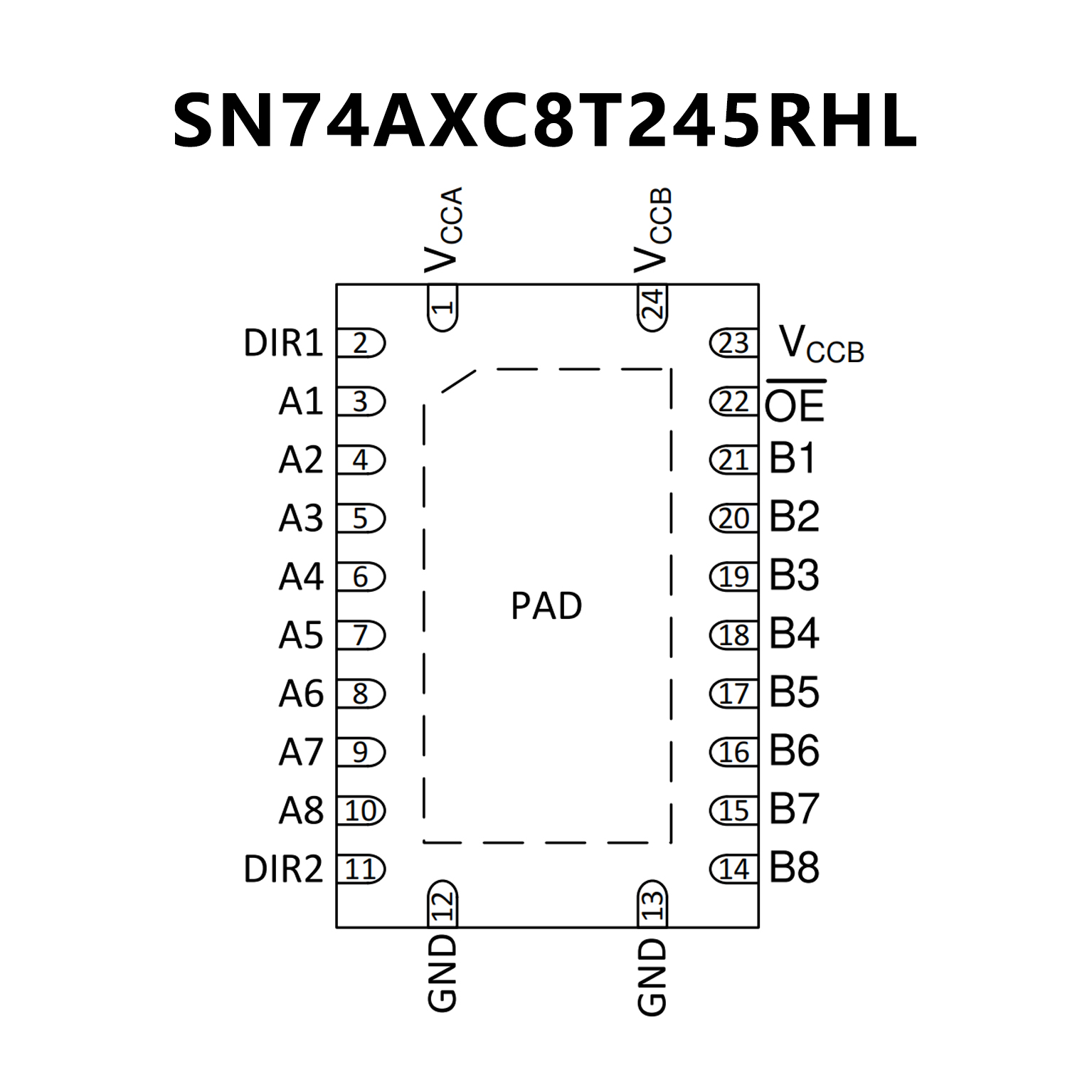 8-Bit Dual-Supply Bus Transceiver With Configurable Voltage Translation and Tri-State Outputs, 74AXC8T245 P2P SN74AXC8T245RHL.