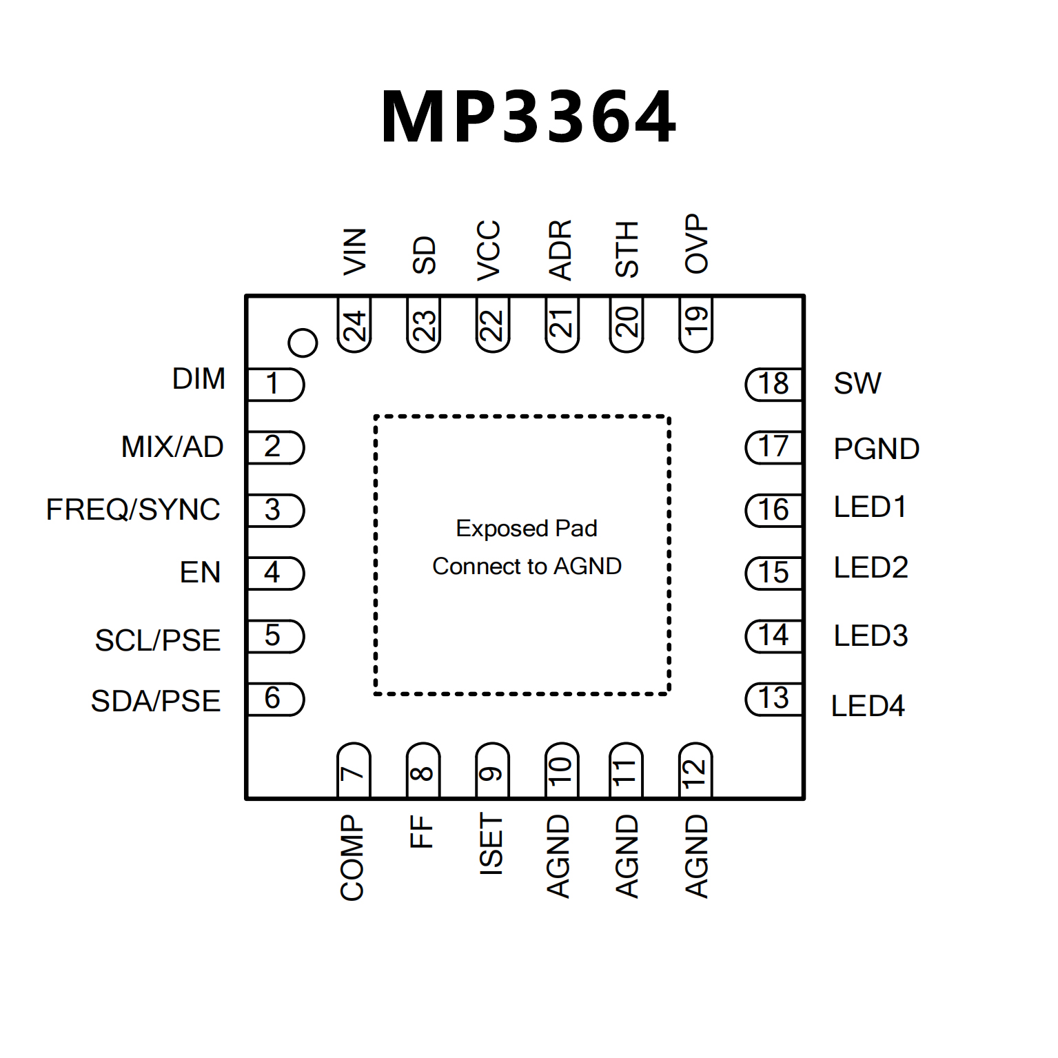 4-Channel, Maximum 150mA/Ch Boost WLED Driver with 15000:1 Dimming Ratio and I2C, SGM37441Q P2P MP3364.