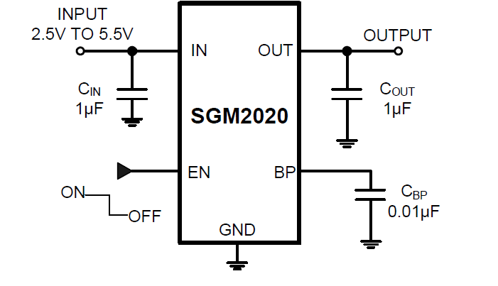 The SGM2020 series low-power, low-noise, low-dropout, CMOS linear voltage regulators operate from a 2.5V to 5.5V input voltage. They are the perfect choice for low