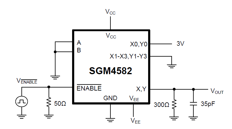 The SGM4582 is a high voltage, CMOS analog IC configured as two 4-channel multiplexers. This CMOS device can operate from ±1.8V to ±5.5V dual power supplies or from +3.6V to +11V single supplies. Each switch can handle rail-to-rail analog signals. The off-leakage current is only 10nA at +25℃.