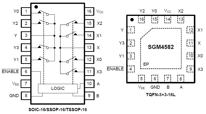 SGM4582 is available in Green SOIC-16, SSOP-16, TSSOP-16 and TQFN-3×3-16L packages. It operates over an ambient temperature range of -40℃ to +85℃.