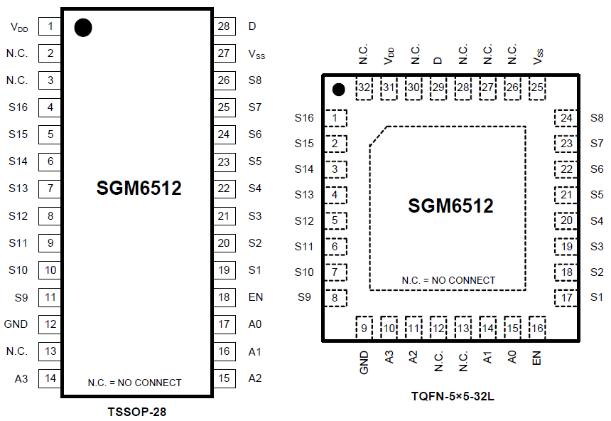 SGM6512 is available in Green TQFN-5×5-32L and TSSOP-28 packages. It operates over an ambient temperature range of -40℃ to +85℃.