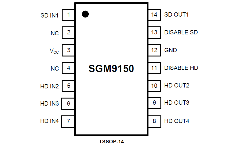 The SGM9150 is available in Green TSSOP-14 package. It operates over an ambient temperature range of -40℃ to +85℃.